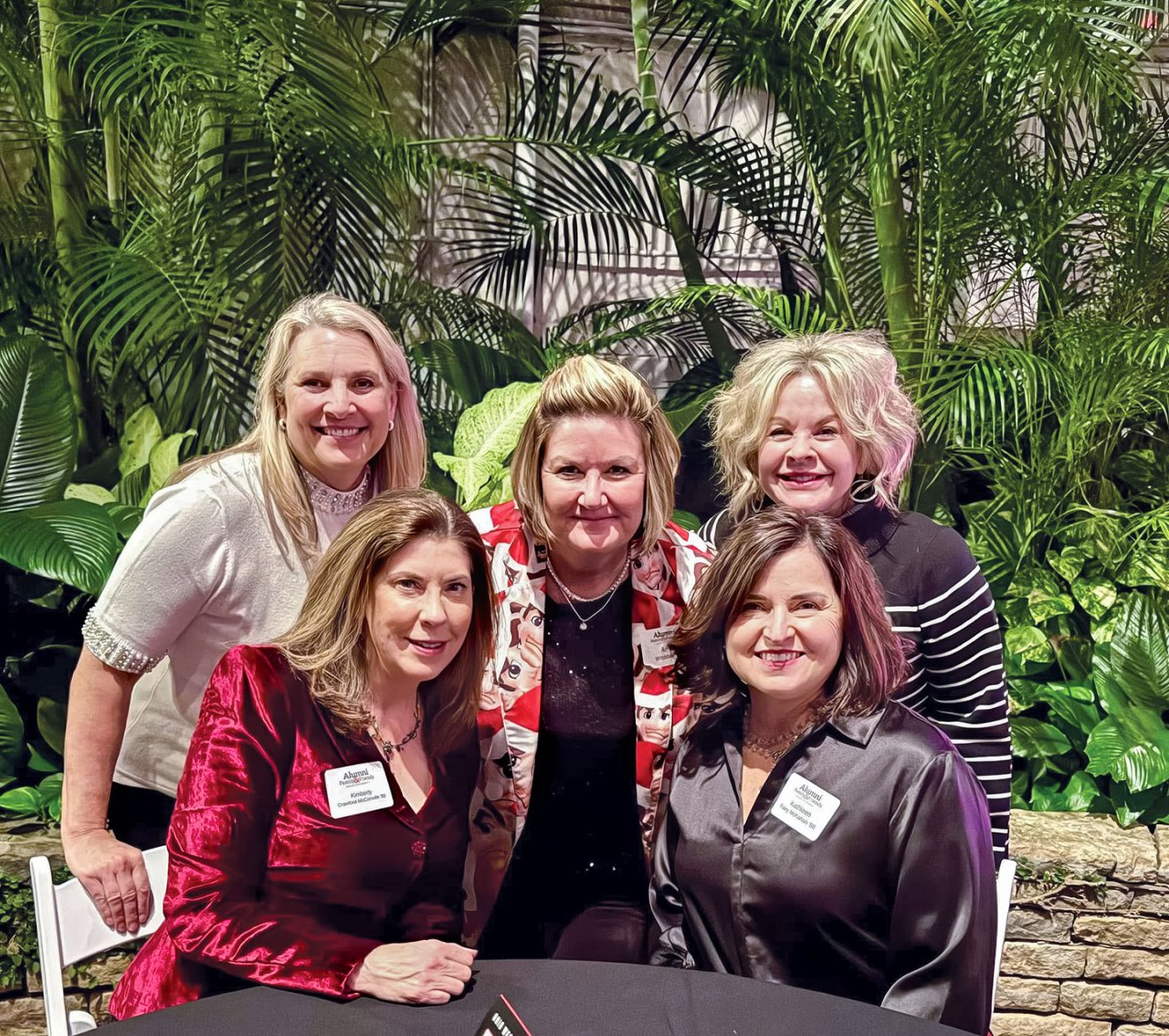 Alumni attending the Columbus holiday party include Gina McCollum Swisher '88, Kimberly Crawford McConville '89, Amy Wrobbel '87, Kathleen Foley McKahan '88, and Victoria Joshua Gresh '88.
