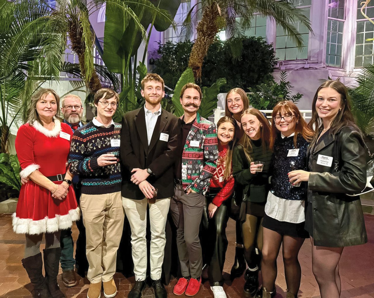Enjoying Franklin Park Conservatory at the Columbus holiday party are (from left) Tammy Wells P'23, Charles Wells P'23, Cooper Berry '22, David McCamon '23, Wyatt Wells '23, Kelsey Stiverson, Kerrington Nelson, Carlyn Bower, Colette Cosgrove '22, and Katie Doiron '23.