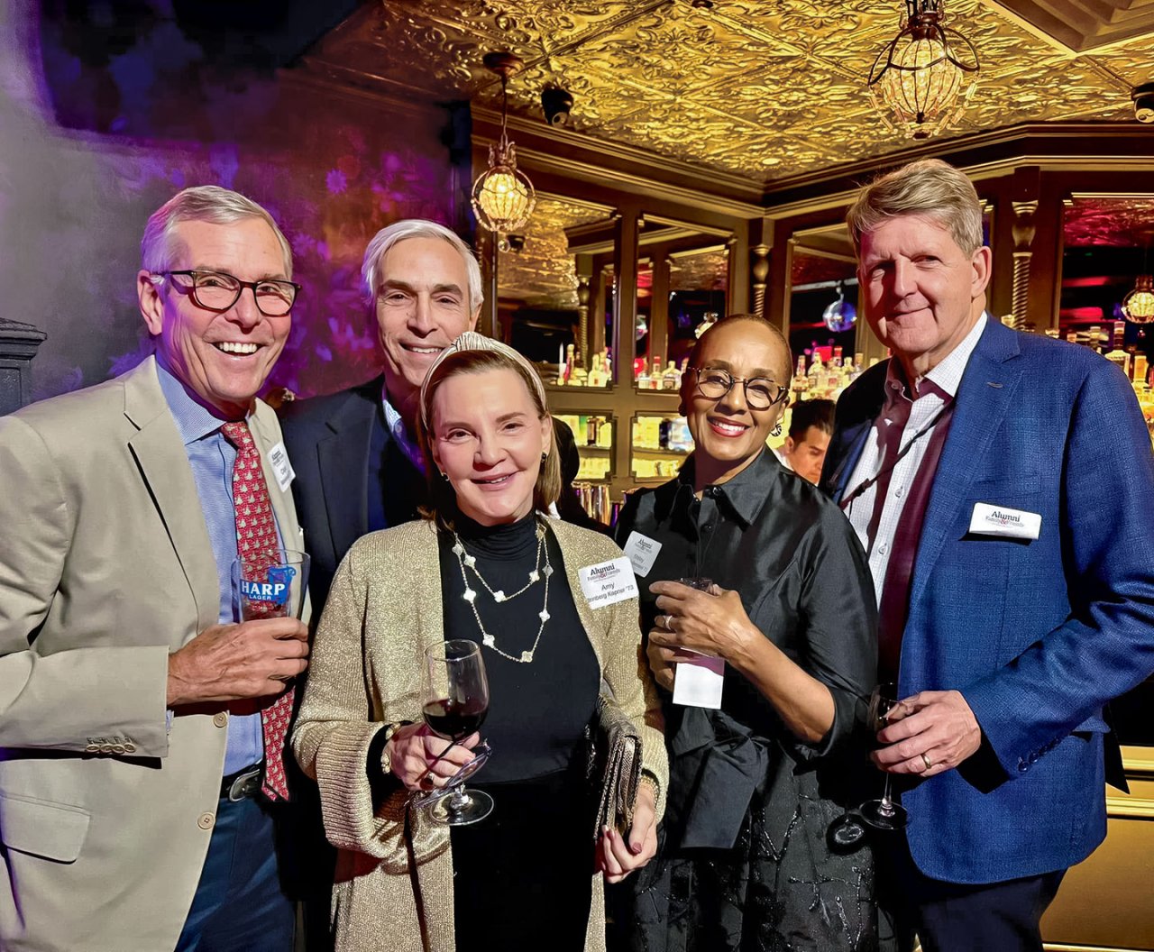 Alumni from the Class of 1973 meeting up at the NYC party are Clark Morehouse, Bruce Kapner, Amy Brinberg Kapner, Shirley Paden-Bernstein, and David Ferris.