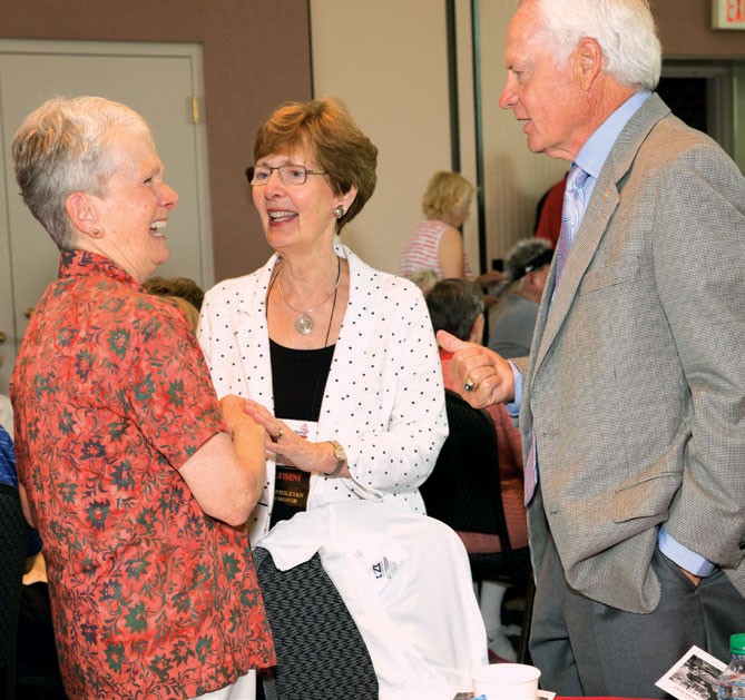 game, SAE brothers gathered at the Hilton-Easton for a social hour and banquet. Special guest History Professor Emeritus Richard Smith welcomed the group back to campus. This was a special opportunity for many of the alumni who took history classes from Dr. Smith as undergraduates, especially five SAEs who were history majors. Following an introduction from recently retired history professor, Hugh Davis ’63, Dr. Smith shared special greetings from President Rock Jones, who provided an update on all the exciting things that are taking place at OWU.