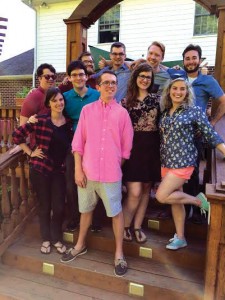 Ohio Wesleyan friends gathered in May 2015 to celebrate Seth O’Loughlin’s ’12 graduation from Michigan State College of Law in Northville, MI. Pictured from left to right are: (front row) Ellen Platt ’12, Seth O’Loughlin ’12, (second row) Paul O’Loughlin ’14, Samuel Meisterman ’12, Mackenzie Schroeder ’15, Delaney Drew ’12, (third row) Dustin Green ’12, Rob Williams ’12, Colin Moore ’15, and Conor Golden ’16.