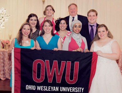 OWU alumni celebrated the wedding of Emily Stinemetz ’11 and Brian Berger on June 13, 2015, in Houston, TX. Pictured from left to right are: (front row) Cailee Smith ’12, Ally Grinder ’11, Ahlam Baqhum ’11, Emily Stinemetz ’11, (second row) Kellie Gross ’12, Alex Garner ’11, Alex Stinemetz ’16, (third row) Brittany Stojsavljevic ’11, and Chuck Stinemetz ’83.