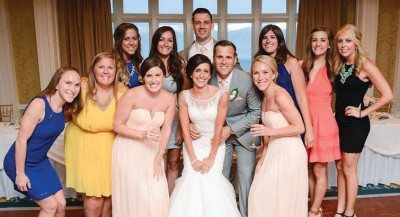 Chelsie Pacha ’10 and Ryan Perone ’08 were married on June 20, 2015, in Westbrook, CT. Other Ohio Wesleyan graduates joining them in their celebration were, from left to right: (back row) Kaylea Bidwell ’10, Maddie Britz ’10, Greg Vasami ’09, Lisa Connolly ’10, Sarah Bonnett ’10, Lindsey Collier ’10, (front row) Alexandra Bryar ’09, Jaclyn Tilden ’10, Kelly Gardner ’10, Chelsie Pacha ’10, Ryan Perone ’08, and Justine Bryar ’09.