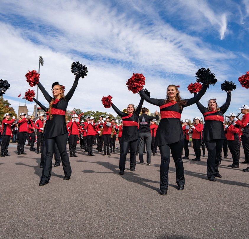 The OWU Marching Bishops kick-off the Homecoming tailgate with a rousing tune.
