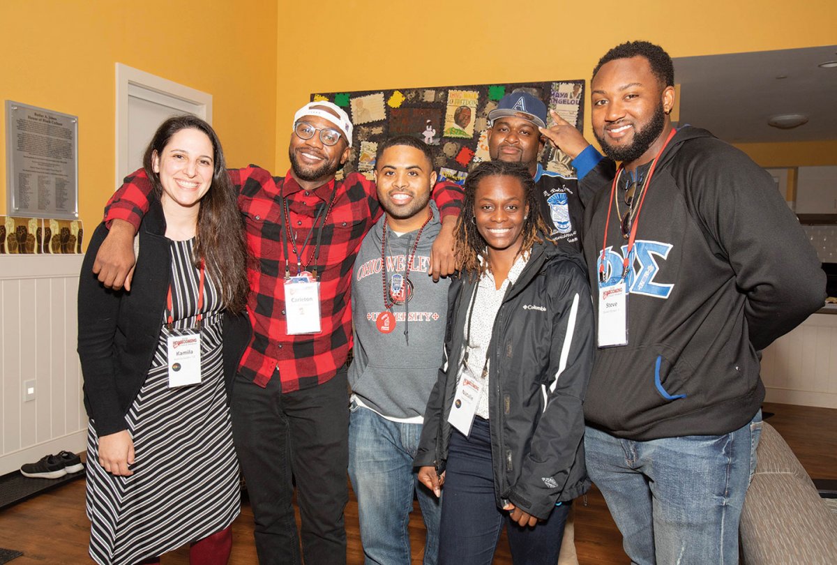 SUBA/BSU reunion at the House of Black Culture, from left: Kamila Goldin ’13, Carleton Levert ’12, Christopher Marshall ’13, Andrew Dos Santos ’13 (behind Natalie Davis), Natalie Davis, and Steve Brown ’10.