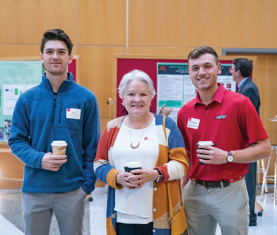 Students Jack Dugan ’20 (left) and Will Efkeman ’20 (right) meet Carolyn Short McKenna. The two are recipients of the Doug Short ’76 Memorial Scholarship.