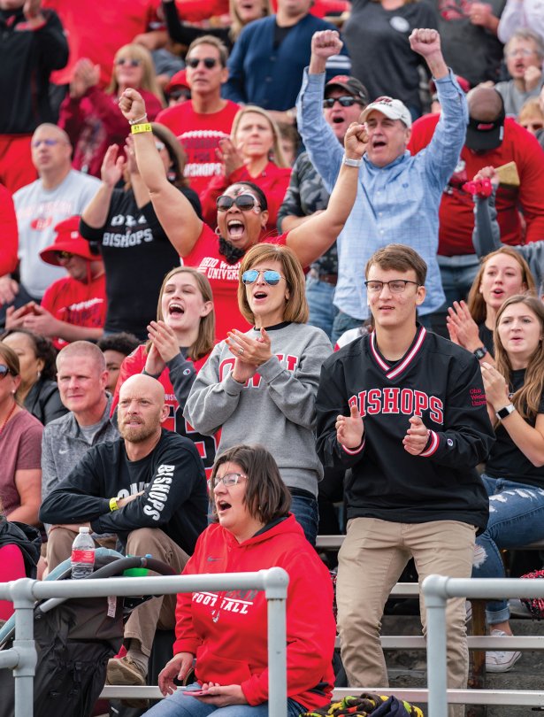 Bishop fans cheer as Ohio Wesleyan defeats DePauw 28-13.