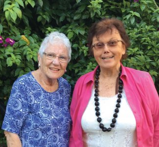Rachael Crawford Gumpf ’56, of Naples, Fla., recently visited her college roommate, Ellen Harmas Haffner ’56, in Menlo Park, Calif. They lived in Stuyvesant Hall and were Alpha Gamma Delta Sorority sisters.