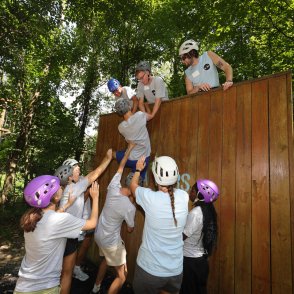 Trust, teamwork, and cheering hands connections grow stronger as everyone climbs together.