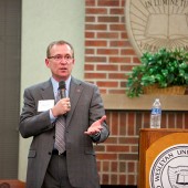Jeff Long ’82: “Ethics is good business.” (Photo by Mark Schmitter ’12) The Benes Room at the Hamilton-Williams Campus Center was full as alumnus…