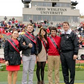 President Rock Jones helped crown OWU’s 2012 Homecoming Royalty. From left: Carly Hallal ’13, queen; Macauley O’Connor ’13, king; Marissa Esber…