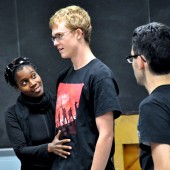 Helping students with breathing and pronunciation exercises, Timpo encourages students to reach their personal goals. (Photo courtesy of OWU’s Department…
