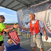 Jamie Ranney ’91 (left) and Bill Burnett ’92 at the Nantucket Triathlon, a race the two founded five years ago to raise scholarship money for local…