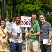 Participating in their first Alumni Weekend Parade of Classes: (left to right) Jenn Tilden, Mitchell Briant, Curt Sykes, and Corey Baker. (Photo by Paul…