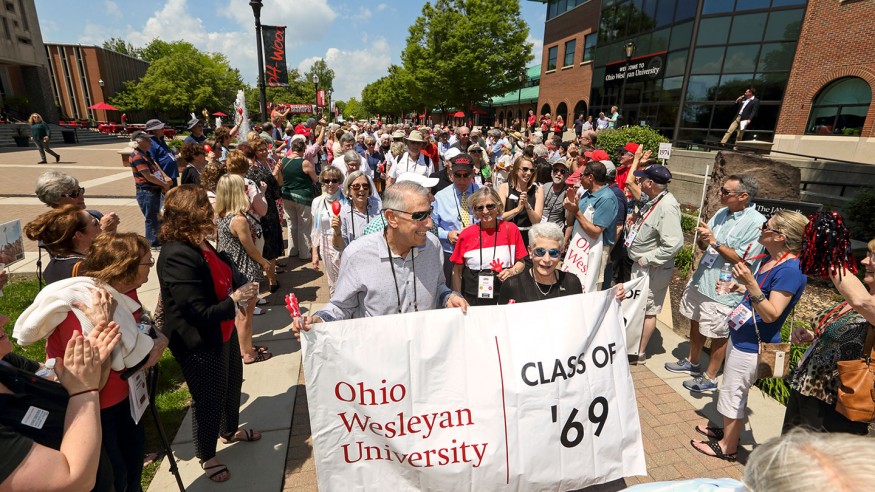 Both Ed Haddock and Tom Palmer were celebrating their 50th reunion. Their Class of 1969 set records both in attendance, with 140 classmates, and fundraising with $4,138,955 raised, including $545,796 in cash and pledges to the Ohio Wesleyan Fund.