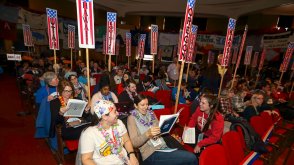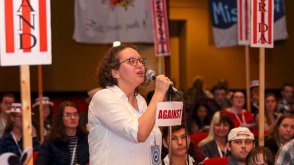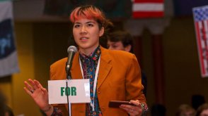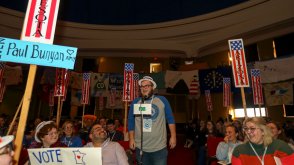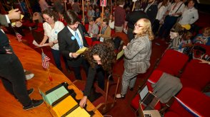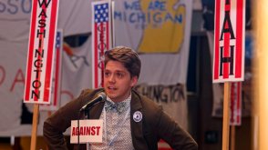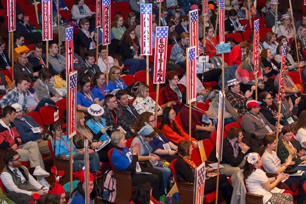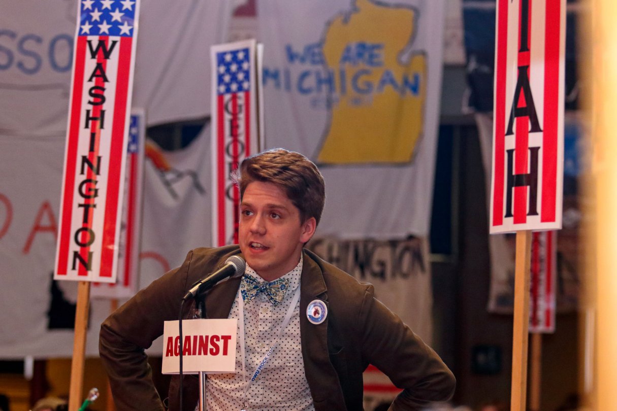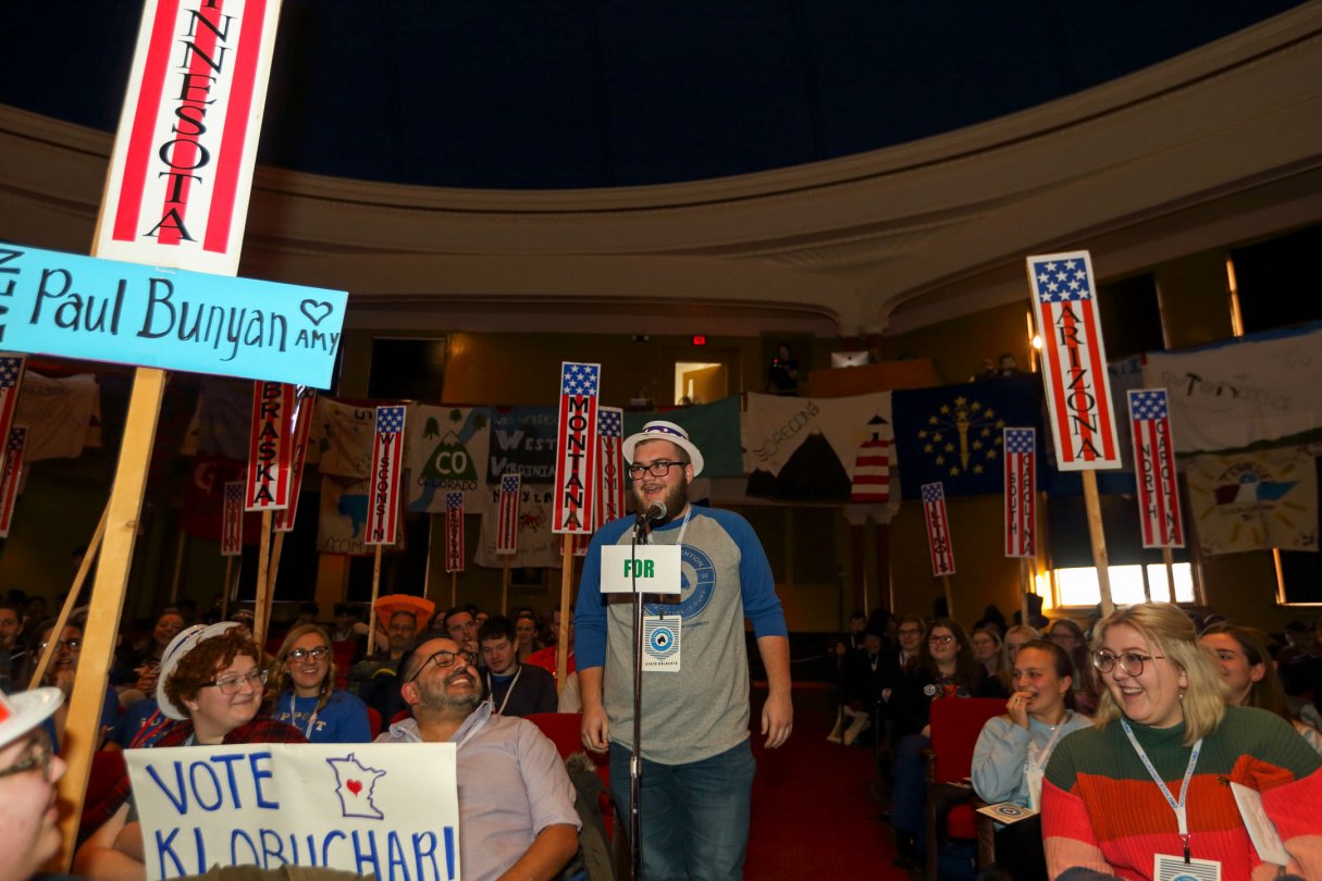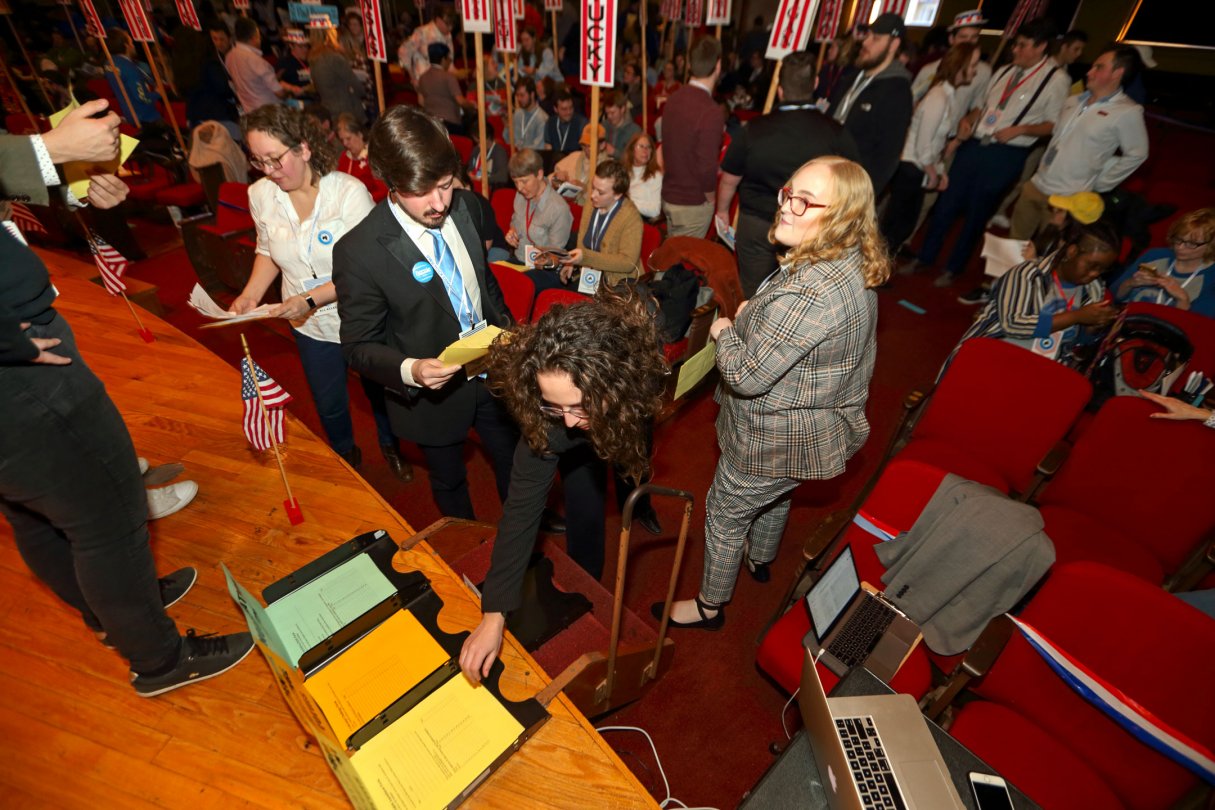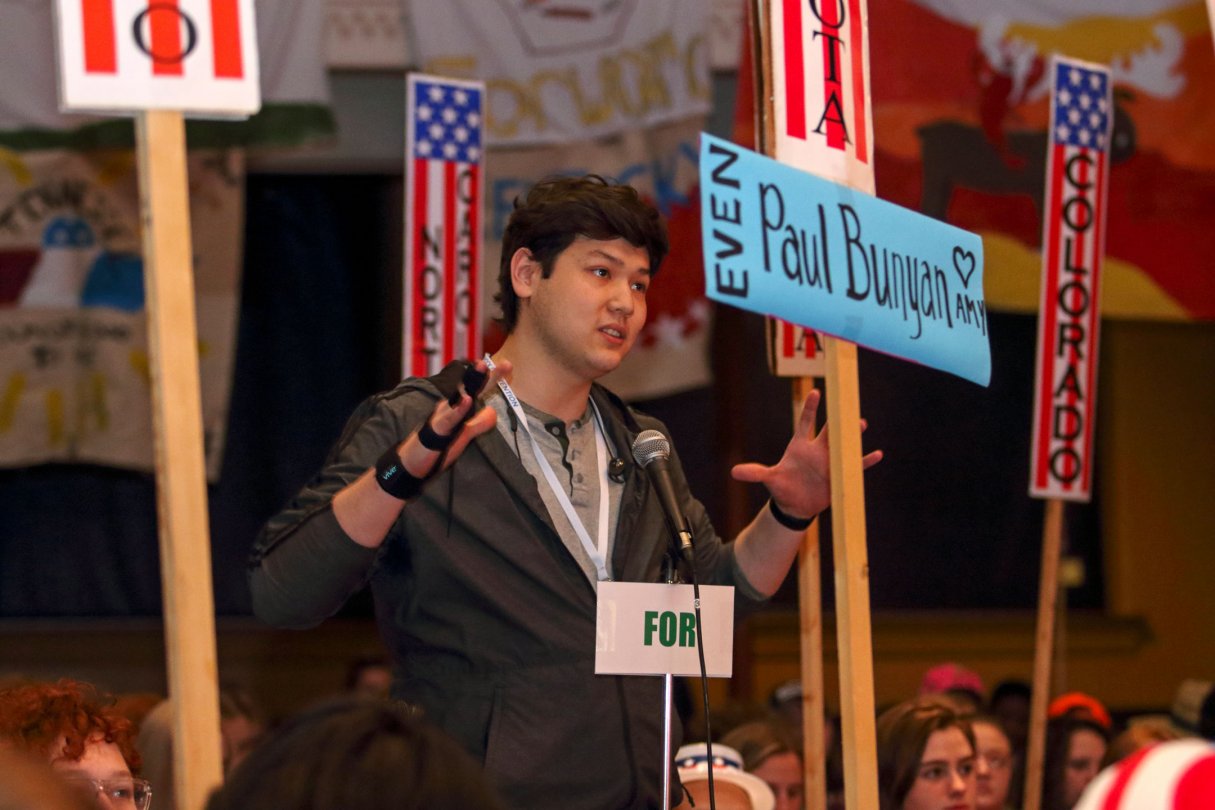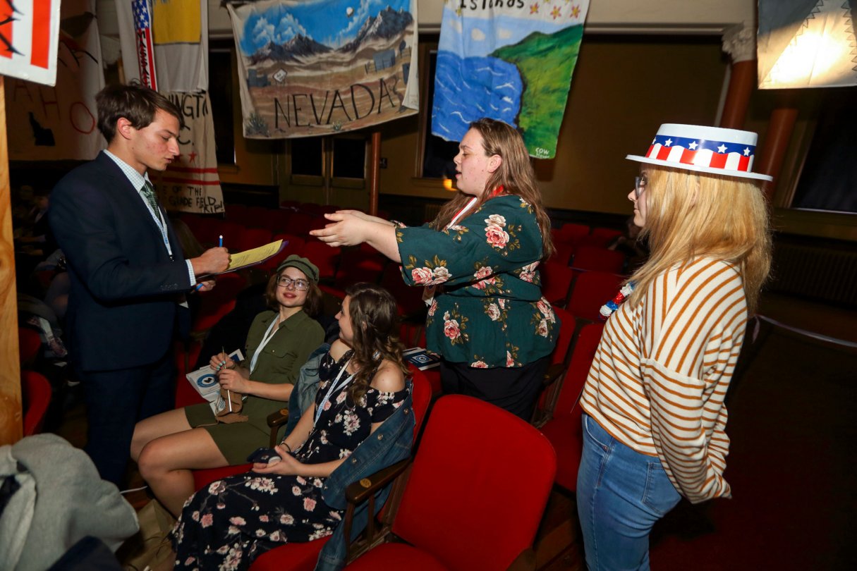 During the Mock Convention, Ohio Wesleyan students also debated and amended a party platform, which outlines suggested Democratic positions on leading issues of the day.