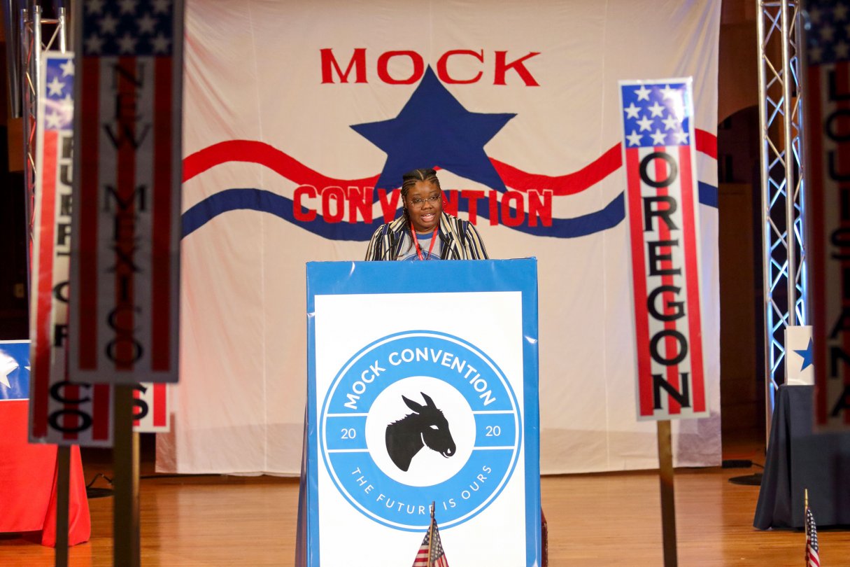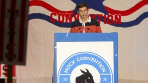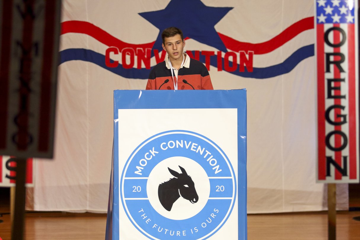 U.S. Sen. Warren of Massachusetts was selected as the Mock Convention's presidential nominee following a run-off election with U.S. Sen. Bernie Sanders, I-Vermont. Also nominated for the top spot were former South Bend, Indiana, Mayor Pete Buttigieg, former U.S. President Jimmy Carter, and U.S. Sen. Amy Klobuchar of Minnesota.