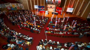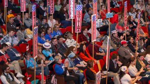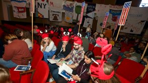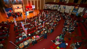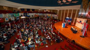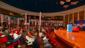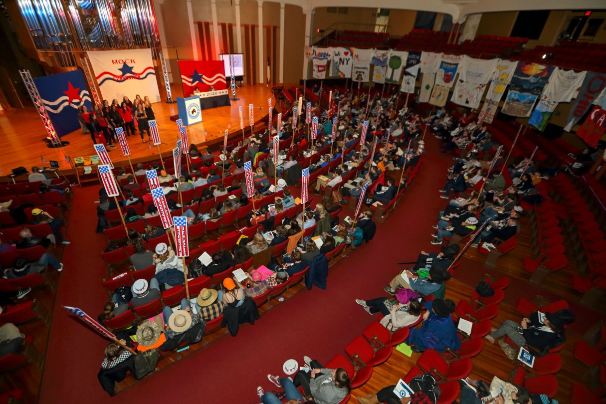 Because the event always features the party out of the White House, the 2020 Mock Convention focused on the Democratic race. The theme of this year's Mock Convention was "This Future is Ours." Learn more at www.owu.edu/mockconvention or www.facebook.com/OWUMock.