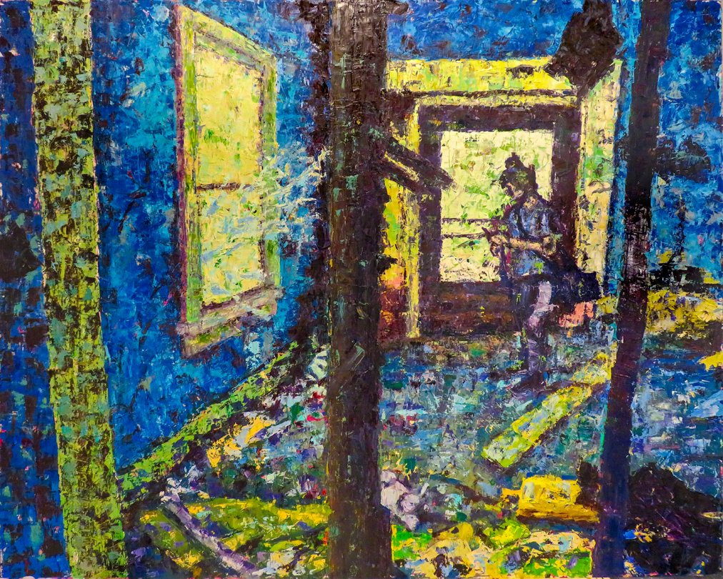 - Rory Gleeson of New Plymouth, Ohio. Gleeson states: “My artwork is heavily based in process – the fitting together of layer after layer of color and chaos into a fairly cohesive whole. … Working mainly with oil and acrylic paint, I first create a wild abstract painting, and eventually form an image over top of it. ... My influences include the post-impressionist, expressionist, and action painting movements, as well as modern vaporwave and Lo-Fi aesthetics.”