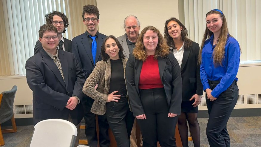 Seven Ohio Wesleyan University students competed in the American Collegiate Moot Court Association's 2023-2024 season, with Anna Nacci '24 ranking among the top orators in the Capital City Classic tournament and all of the OWU teams finishing in the top half of event participants.