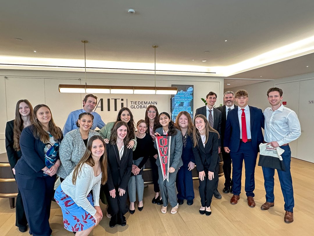 In New York, the students met business leaders including OWU graduates Mike Tiedemann '93, founding partner and CEO of AlTi Tiedemann Global; Tom Goodman '76, president, CEO, and founder of Goodman Media International; and Lucas Nathanson '22, assistant account executive, Goodman Media International.