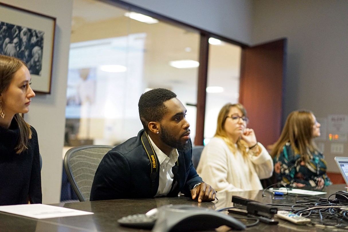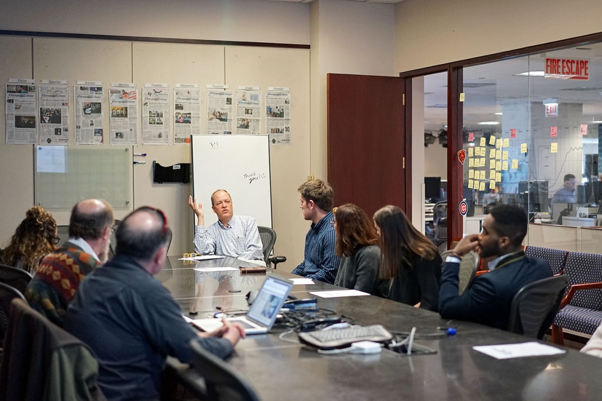 Experience: Matos and seven other students from the OWU Department of Journalism and Communication traveled to Chicago this month, where they attended an editorial meeting at the Chicago Tribune, met with journalism alumnus Matt Cohen ’16, and visited the American Writers Museum.