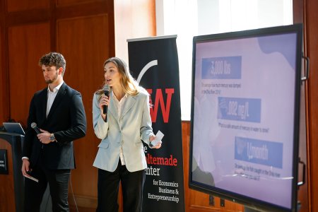 The winning team of Blake Johnson '24, a Politics and Government major from Centerburg, Ohio, and Zoë Swanson '24, a Pre-Professional Zoology major from Mansfield, Ohio, earned $3,000 for their proposal, "Terrabuffer: Sustainable Solutions."