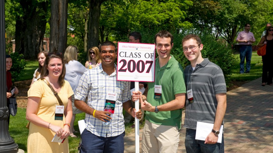 Smiles, hugs, and plenty of good cheer permeated campus as several hundred OWU alumni whose class years end in “2” or “7” came back to their alma mater for Alumni Weekend on May 19-21. While there was ample time for catching up with dear friends, the weekend included a flurry of activities: campus tours, thought-provoking alumni college sessions, special alumni recognition programs, reunion dinners, a music enhanced Blues & Barbecue dinner on the JAYwalk, the traditional Parade of Classes, and the All-Alumni Luncheon featuring campus updates by OWU President Rock Jones. Coordinated by Emily Roudebush, assistant director of alumni relations, Alumni Weekend offers everyone a great reason to travel back to that place they once considered their ‘home away from home’ for several years.