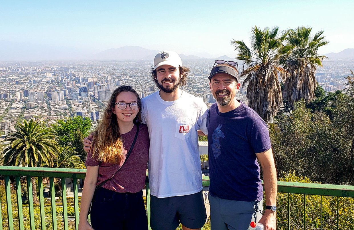 Ohio Wesleyan’s William Hayes (left) and students Jonathan Munroe ’24 and Alena Arnold ’23 traveled to Chile to study its public-private conservation efforts and other environmental issues. (Photo courtesy of William Hayes)