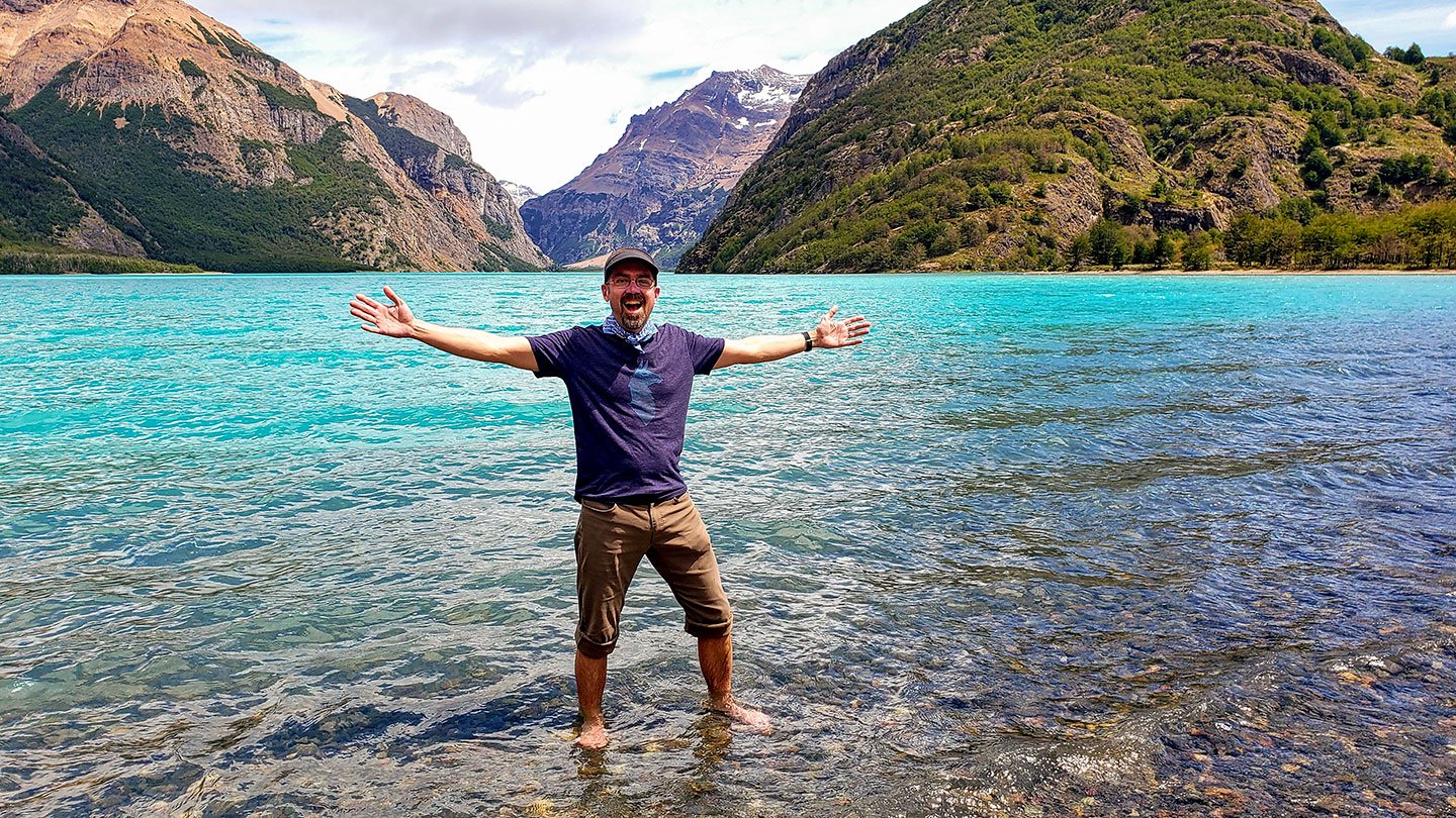 Arnold: “My favorite moment of the entire TPG was on our hike in Queulat National Park. We crossed a raging glacial river on a swinging bridge, hiked up the side of a massive foothill, through a waterfall, and up to a lookout point overlooking the Hanging Glacier.