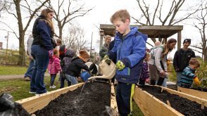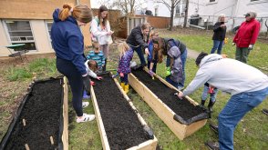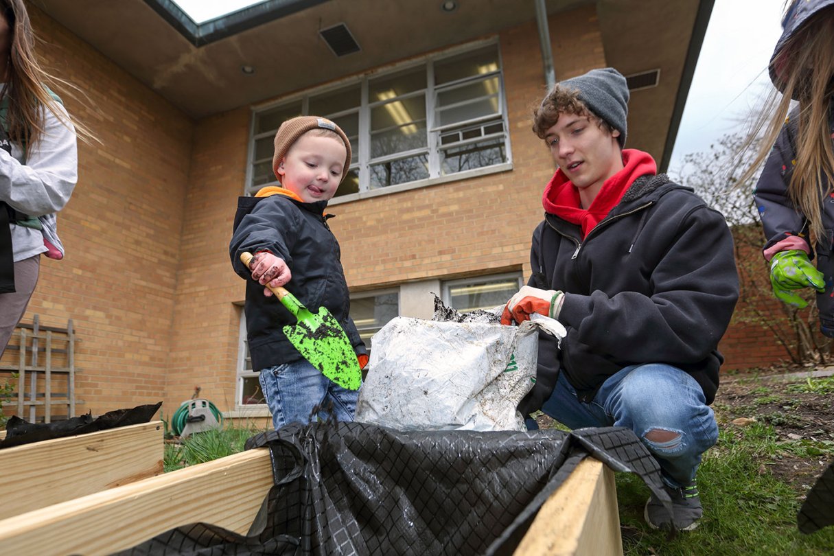 SEAL provided wooden garden boxes and soil, while families of 3-, 4-, and 5-year-olds attending the Early Childhood Center (ECC) donated box liners, seeds, and gardening tools. Cynthia Buettner, a member of the Delaware Master Gardeners, advised Steed on what to grow in the edible garden and then answered home gardening questions for families after the planting party.