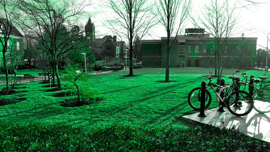 Ohio Wesleyan’s first Green Week will be held March 25-29, with events for both the campus and Delaware communities. The planners earned two external grants to help with the observance. (Photo by Taylor Rivkin ’14, photo illustration by Doug Thompson)
