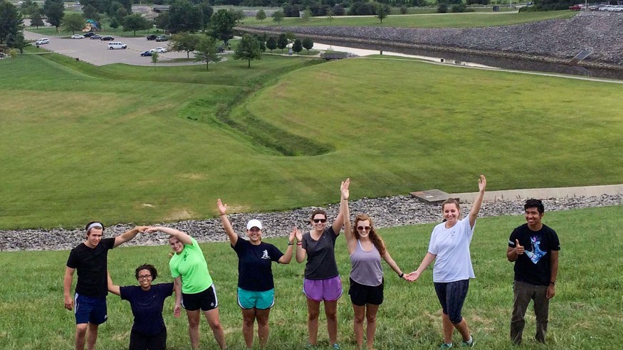 Ohio Wesleyan’s Fresh X pre-orientation program has been helping first-year students to prepare for their college experience and to meet current students and other freshmen for 25 years. Here the 2015 Habitat for Humanity team shows its OWU spirit! (Photo by Sarah Kennedy ’17)