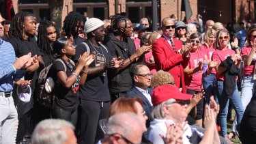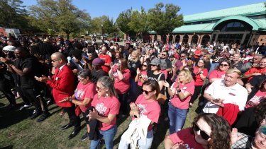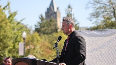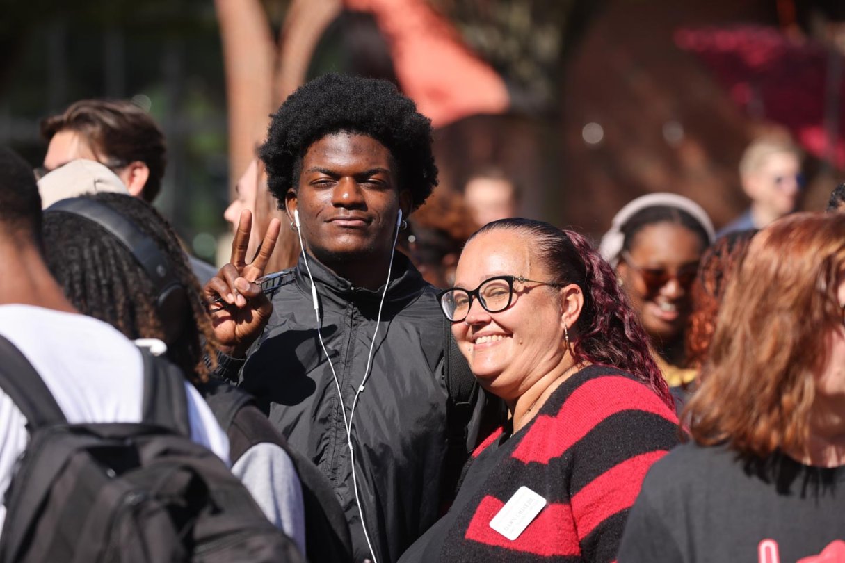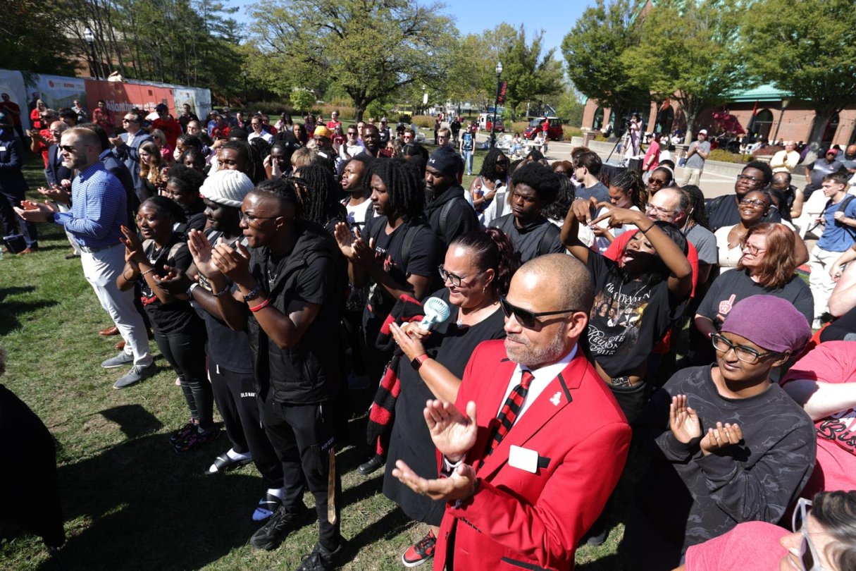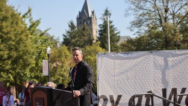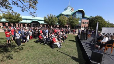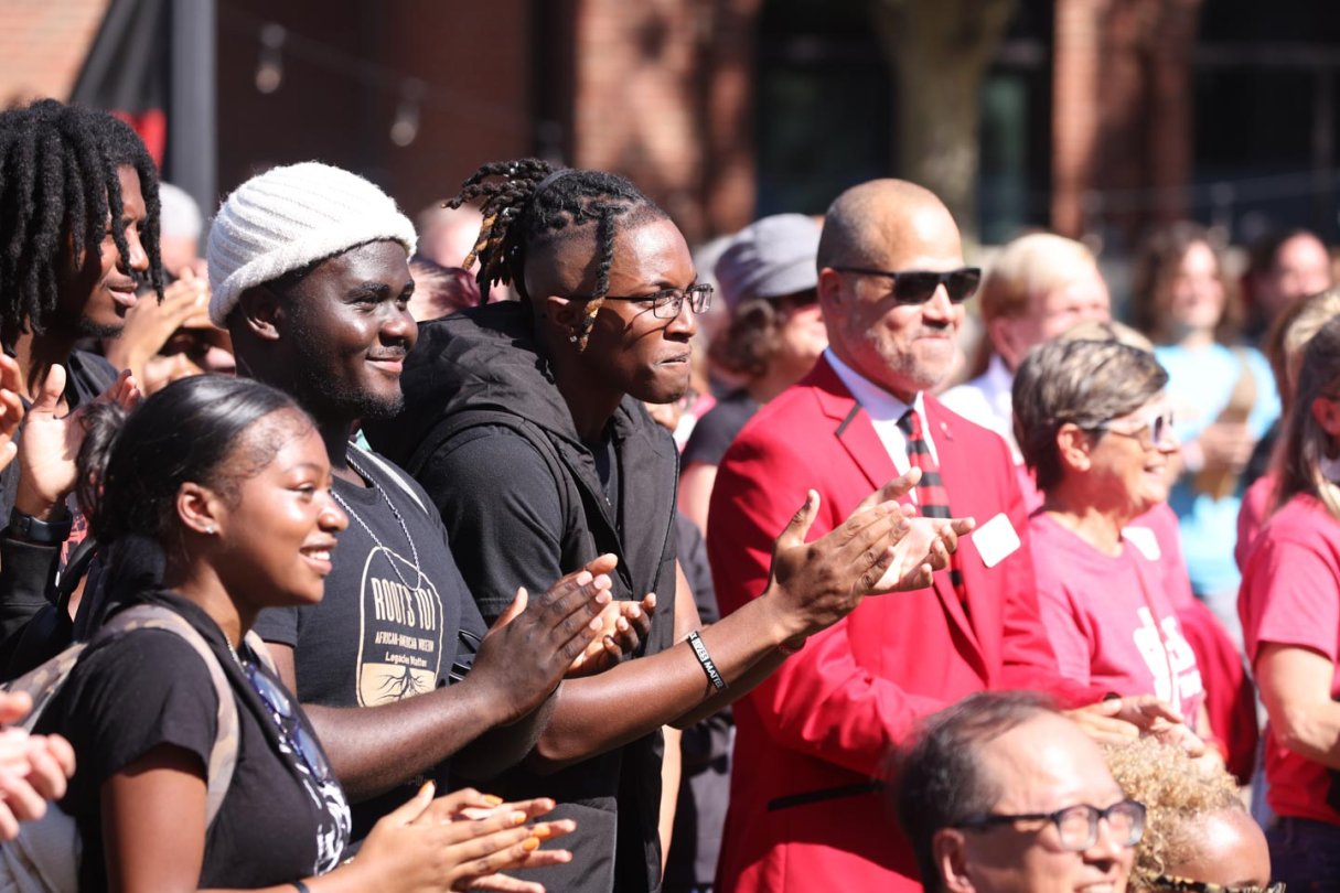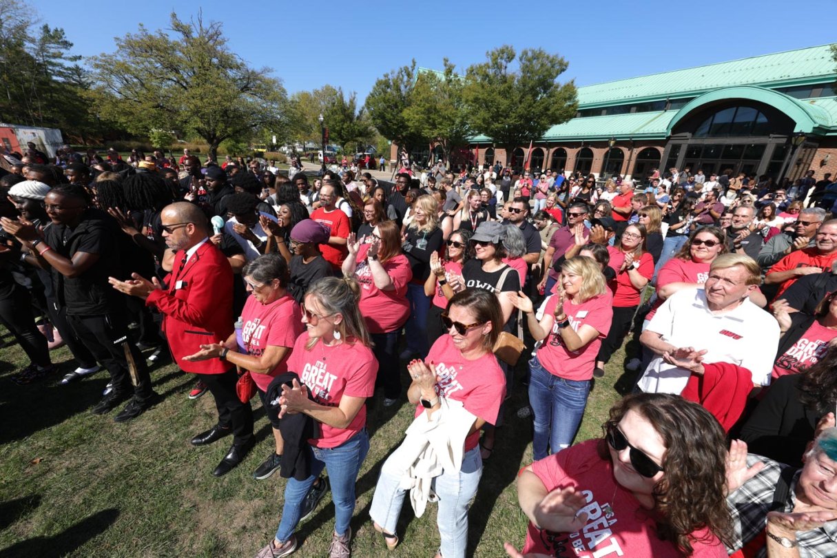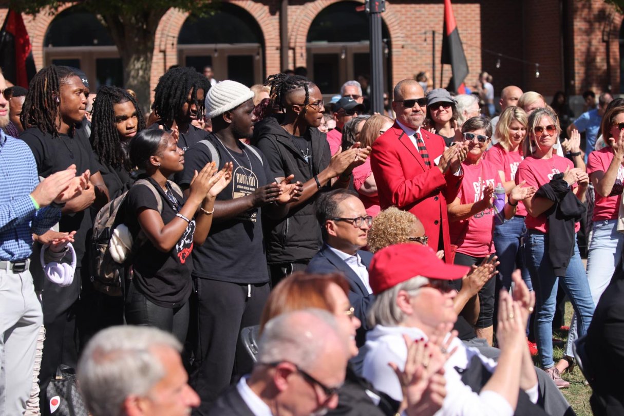 During a campuswide celebration Oct. 3, Ohio Wesleyan President Matt vandenBerg turned a ceremonial shovel of dirt and introduced donors to share news of $15 million in gifts and commitments to create the Smith Center for Faculty Excellence and the Palmer Center for First-Generation Student Success.