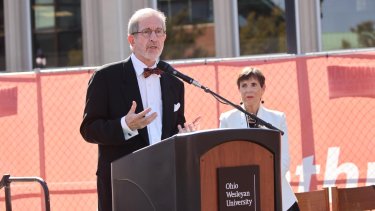 During the Oct. 3 event, vandenBerg also formally kicked off the top-to-bottom renovation of its current main library to create the John F. Milligan Library, funded by $50 million in donor contributions, including a lead $20 million gift from John and Kathryn Bradford Milligan, both life trustees and members of the OWU Class of 1983.