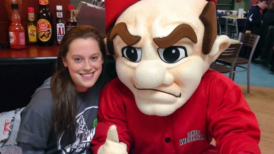 Allison Smith ’15 and the Battling Bishop take part in this year’s Healthy Bishop Day. (Photo courtesy of Karson Stevenson ’16)