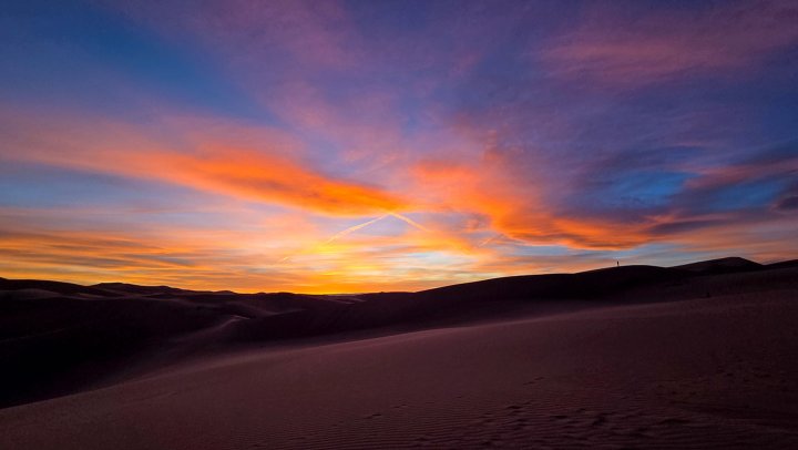 "My favorite moment of this trip was on our sixth night when we backpacked into the sand dunes, set up camp, and hiked farther up to watch the sunset. It was super windy, and the sunset didn't start off as anything remarkable. When we thought it was at its peak, we all began to spread out across the dune into our own space.