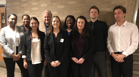 OWU's Midwest Regional moot court competitors. From left: Keionna Badie, Daniela Black, Anne Miner, coach Michael Esler, Lauren Mangold, Alexis Thomas, Ana Borish, Matthew Houck, and Nicholas Melvin.