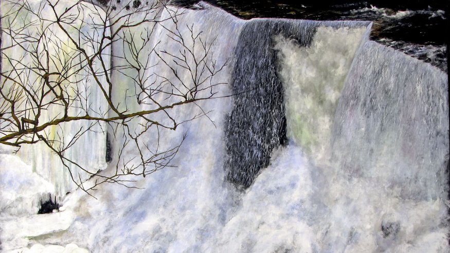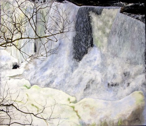 The painting, “Chagrin Falls Winter,” is one of a series Kalb made several years ago of waterfalls in Ohio, New York, and Vermont. The director of the museum, Nannette Maciejunes, saw has painting at an exhibition of Ohio artists at the Governor’s Mansion in 2019 and chose to add it to the museum’s collection.