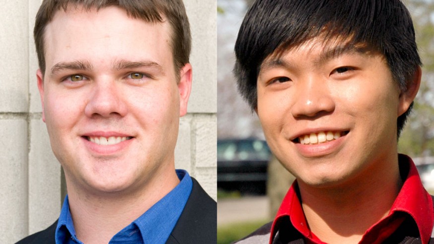 Clint Needham, left, and Jabez Co each have earned international music composition awards this semester. (Needham photo courtesy of OWU’s Office of Marketing and Communication, Co photo by Linda O’Horo)