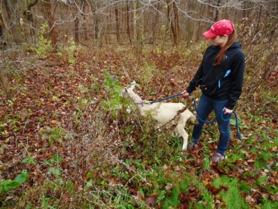 Day conducted research at the nearby Stratford Ecological Center this fall, using its herd of Toggenburg goats. First, she studied whether the goats preferred the taste of honeysuckle over other native plants. Using six types of foliage, she determined the goats favored the flavors of honeysuckle and winged euonymus, more commonly known as burning bush.
