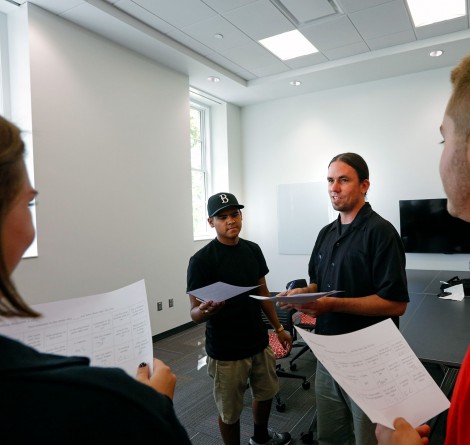 Sociology and anthropology professor Paul Dean (center) will help to oversee Ohio Wesleyan’s new social justice major, approved for fall 2017. A new Middle Eastern studies major will begin in the fall as well. (Photo by Larry Hamill)