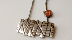 Lyssa Matzat of Greenwood, Indiana. “As a jewelry designer, my fascination with geometric shapes has evolved into a study of combining the angularity of the work itself and the soft features of the human body. I explore these contrasting features and test the limits of what can actually be worn on the human body while remaining true to its original purpose as a piece of body adornment.”
