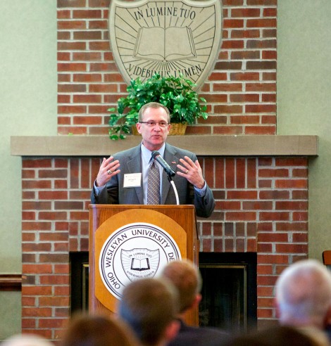 Ohio Wesleyan University graduate Jeff Long, vice chancellor and director of athletics for the University of Arkansas-Fayetteville, visited campus in April 2013 to discuss the “Role of Ethics in Leadership and Decision Making.” (Photo by Mark Schmitter ’12)