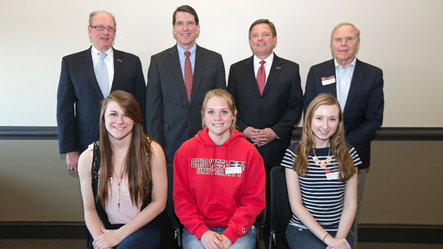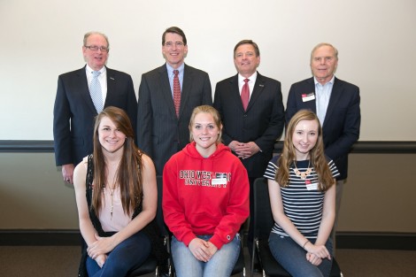 To celebrate the gift, Delaware County Bank representatives came to campus April 1 to meet with Ohio Wesleyan’s 2014-2015 DCB scholars: Sierra Becraft of Big Walnut High School, Cassandra Call of Delaware Hayes High School, Casandra Ingram of Buckeye Valley High School, Law Jones of Olentangy Liberty High School, Rebecca Penrod of Buckeye Valley High School, and Skye Wanstrath of Olentangy High School.