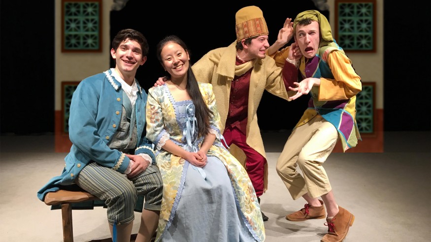 Zanni (commedia servants) are portrayed by students Victor Peddicord and Erin Fannin. Music is provided by students Jake Simpson and Audrey Castañeda Walker, and the play features period costume designs by Jacqueline Shelly and lighting design by Chadwyn Knutson.