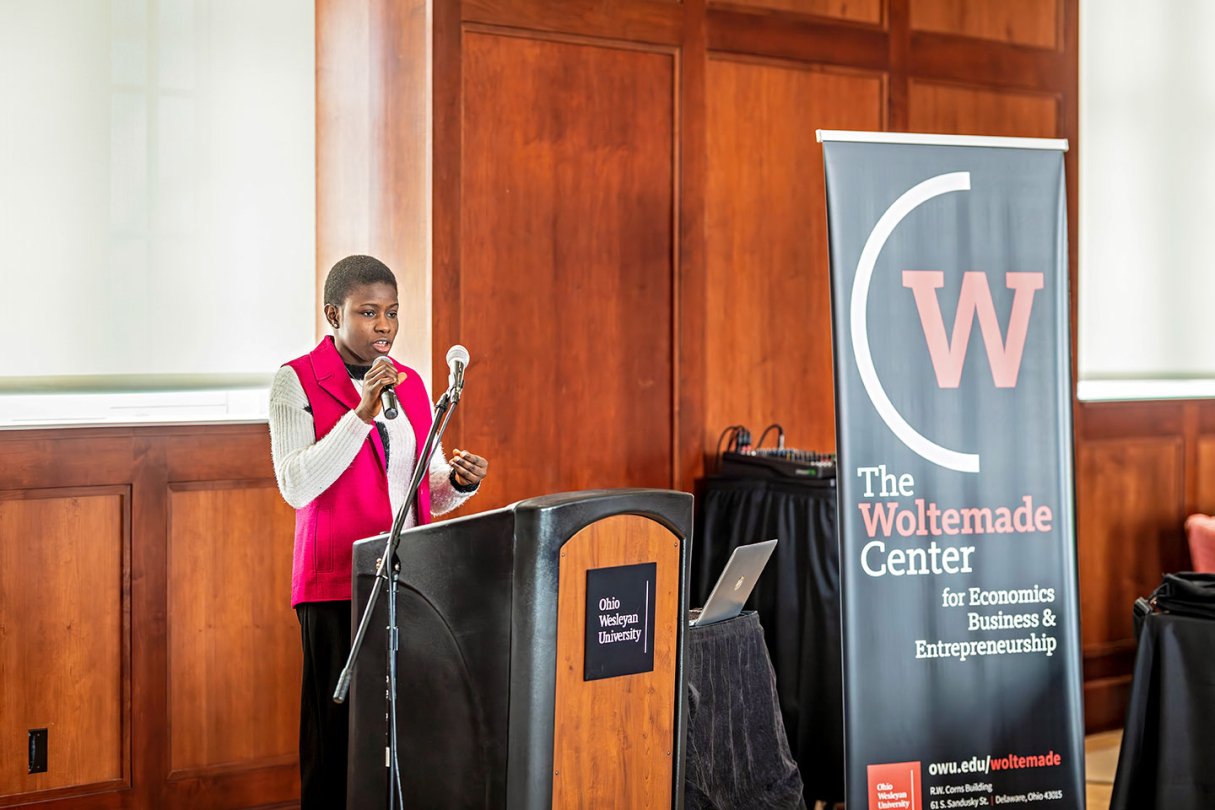 Both budding Bishop entrepreneurs claimed $3,000 in start-up funds after winning separate "Shark Tank"-style pitch competitions held Feb. 27 by OWU's Woltemade Center for Economics, Business and Entrepreneurship.