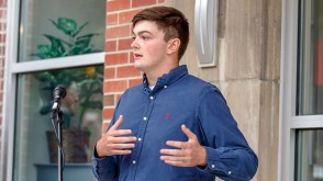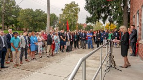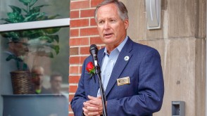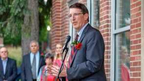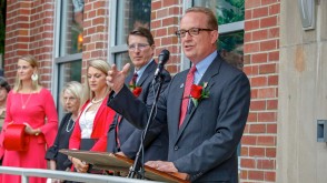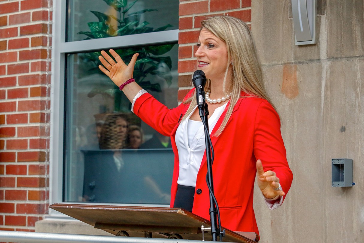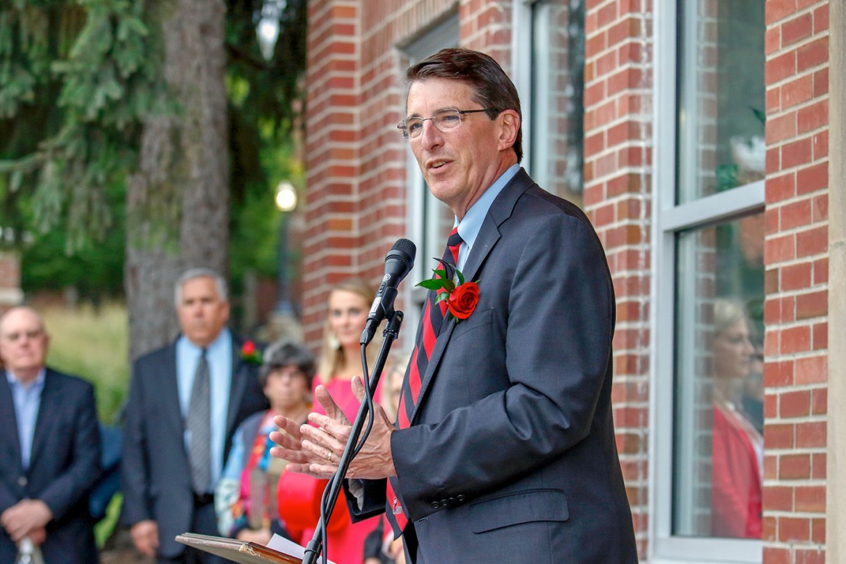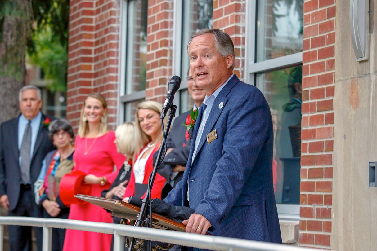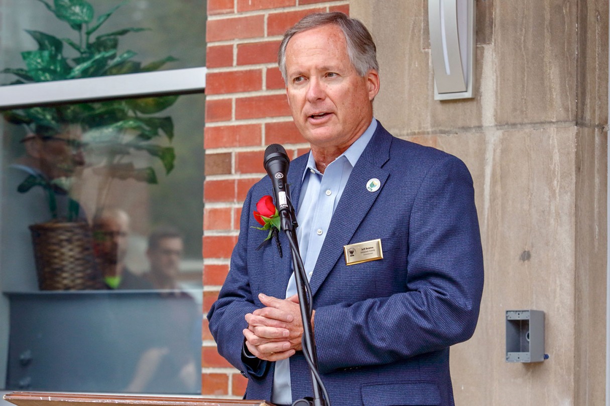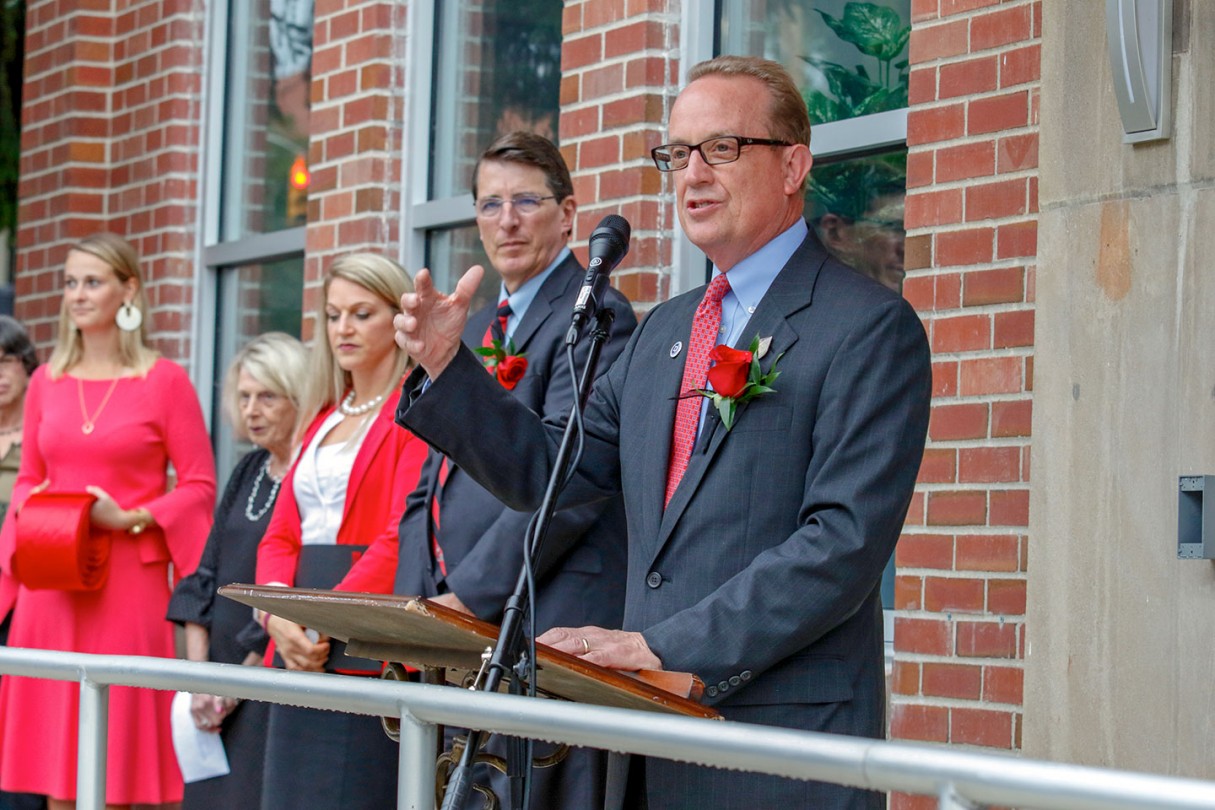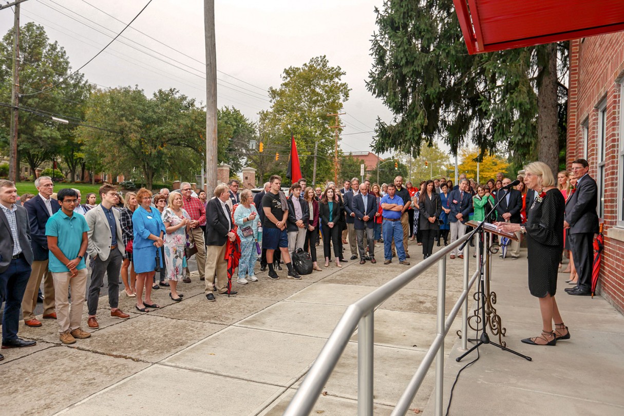 OWU President Rock Jones, Ph.D., also spoke to the crowd gathered at the center, 70 S. Sandusky Ave. Delaware, calling it “a fabulous partnership” among the University, Delaware County, and City of Delaware.