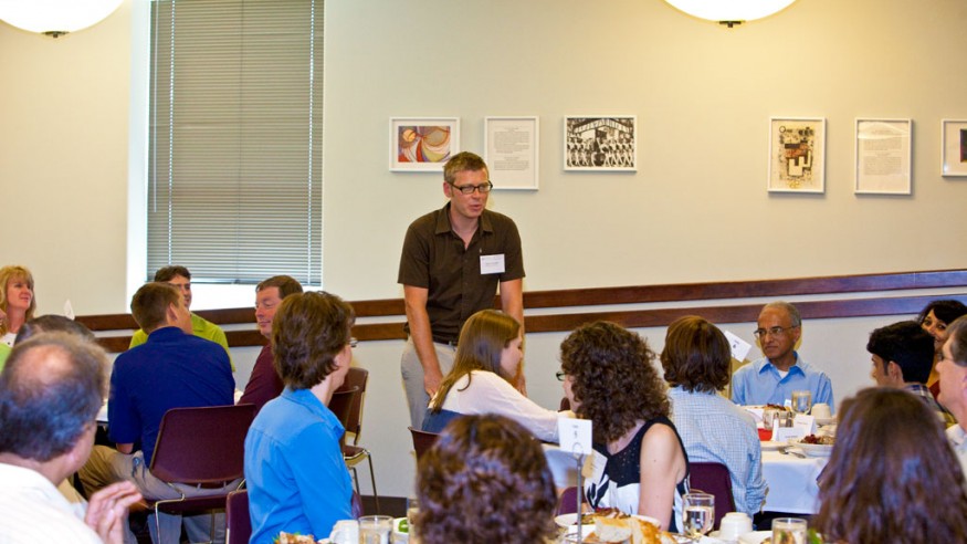 Economics professor Goran Skosples added his words of welcome to the new members of OWU’s Economics Management Fellows Program. (Photo by John Holliger)