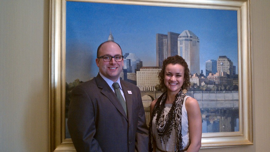 Dan Sharpe ’06 with OWU extern at The Columbus Foundation, Hayley Cook ’14. (Photo courtesy of Hayley Cook ’14)
